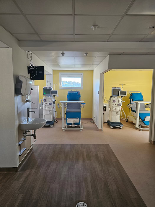 Dotée de postes d’hémodialyse de dernière génération, cette unité est également un projet exemplaire sur le plan énergétique, grâce à l’utilisation de la géothermie sur sondes, permettant un chauffage et un rafraîchissement 100 % renouvelables, réduisant significativement sa consommation énergétique.